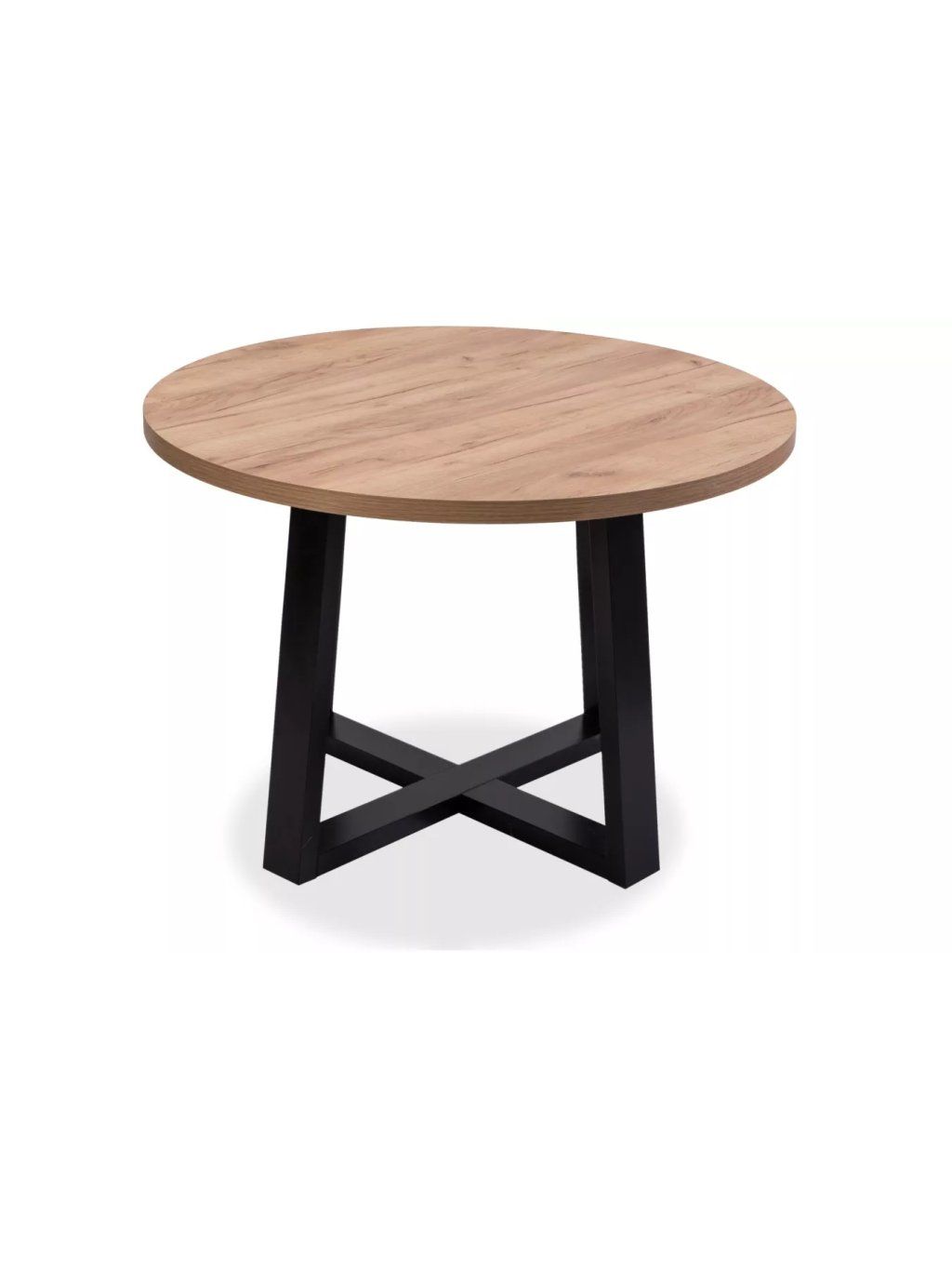 Jídelní kulatý stůl rondo je vyrobený z kovové podnože a z lamino desky v barvě zlatého dubu.
