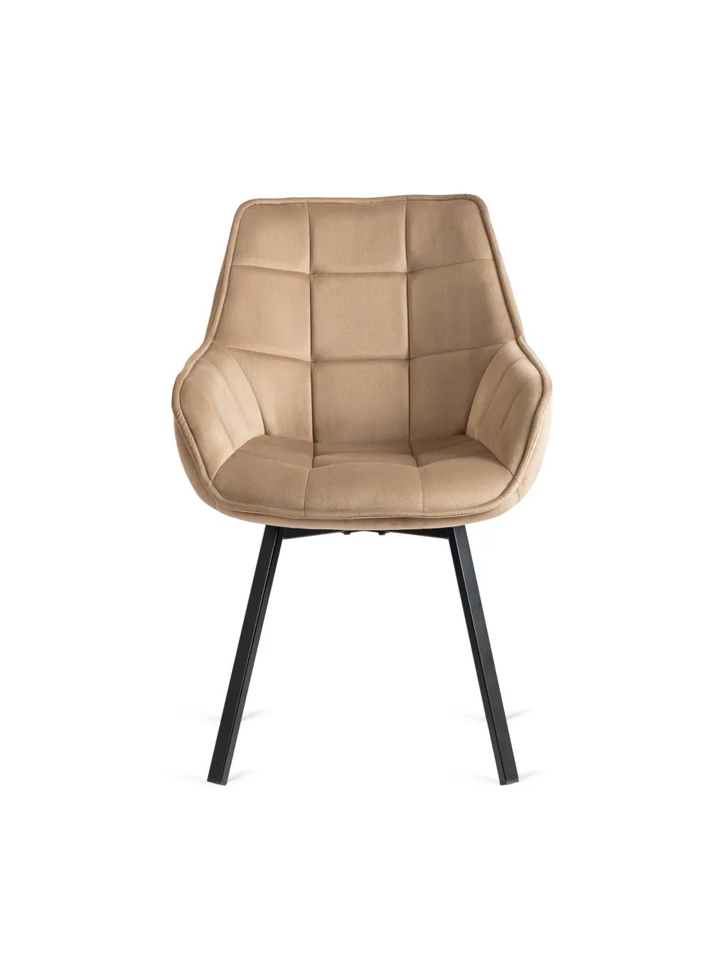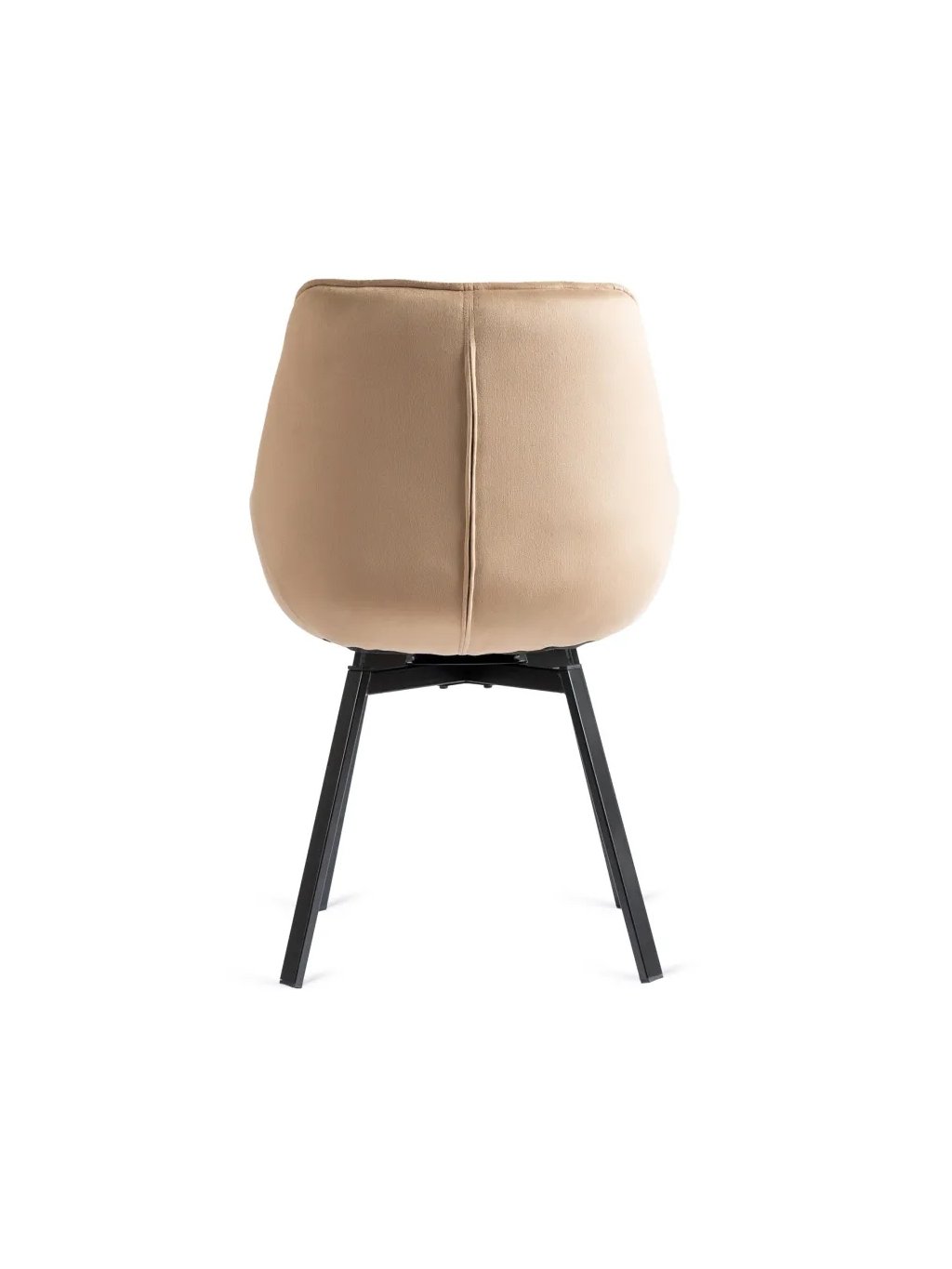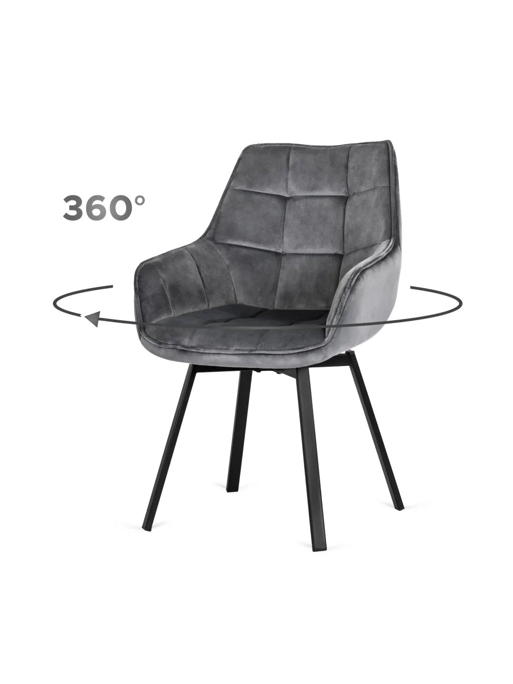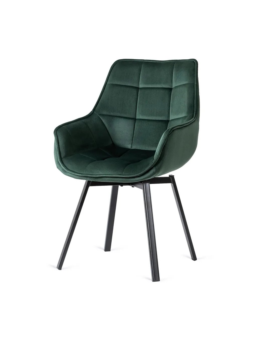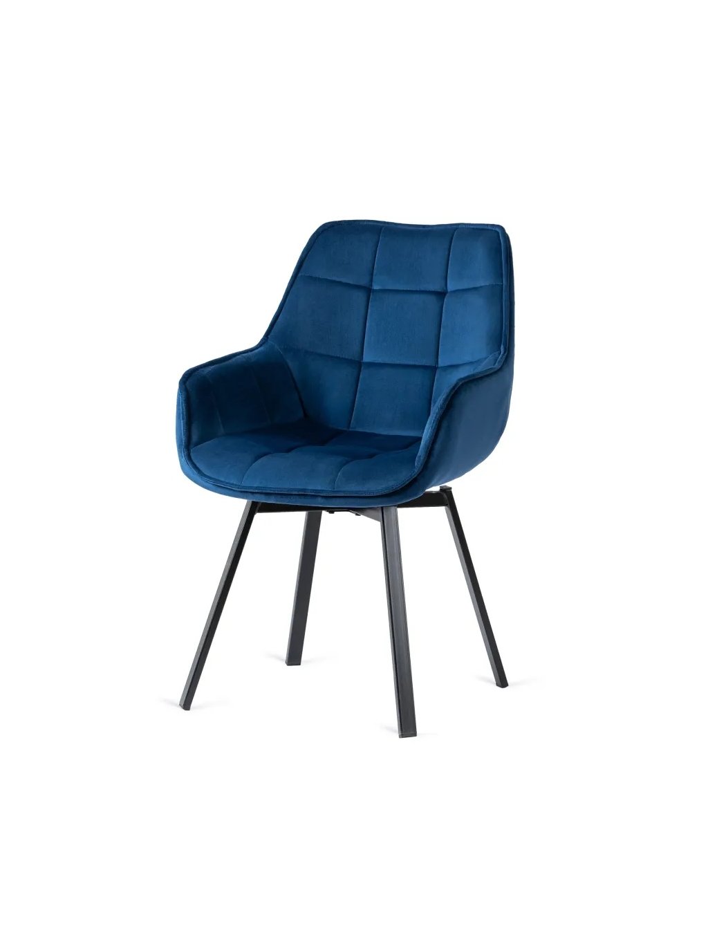 Je otáčecí. Má čalouněnou skořepinu a kovové nohy v černé barvě.