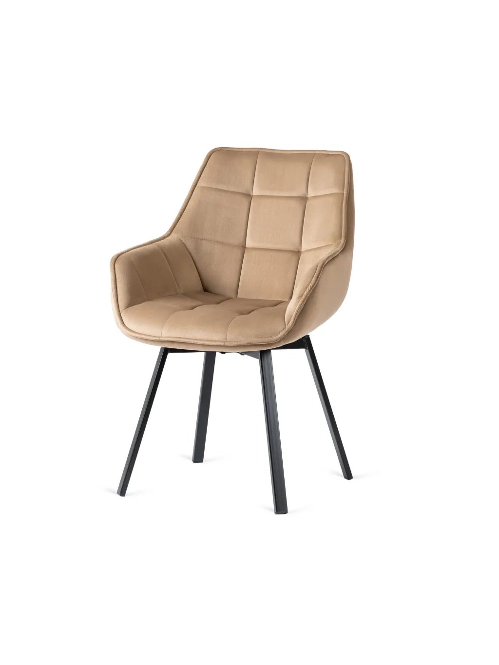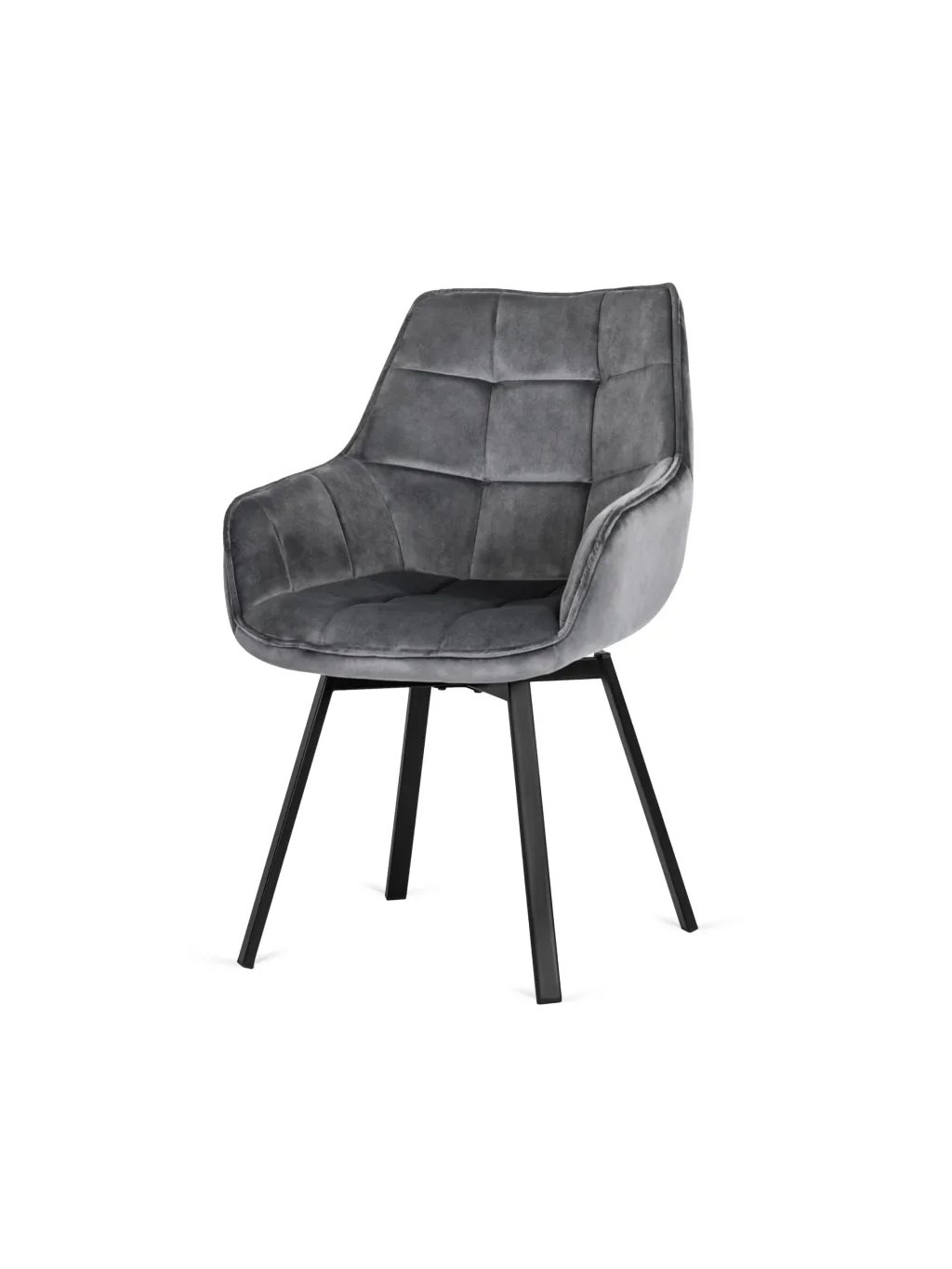 Je otáčecí. Má čalouněnou skořepinu a kovové nohy v černé barvě.