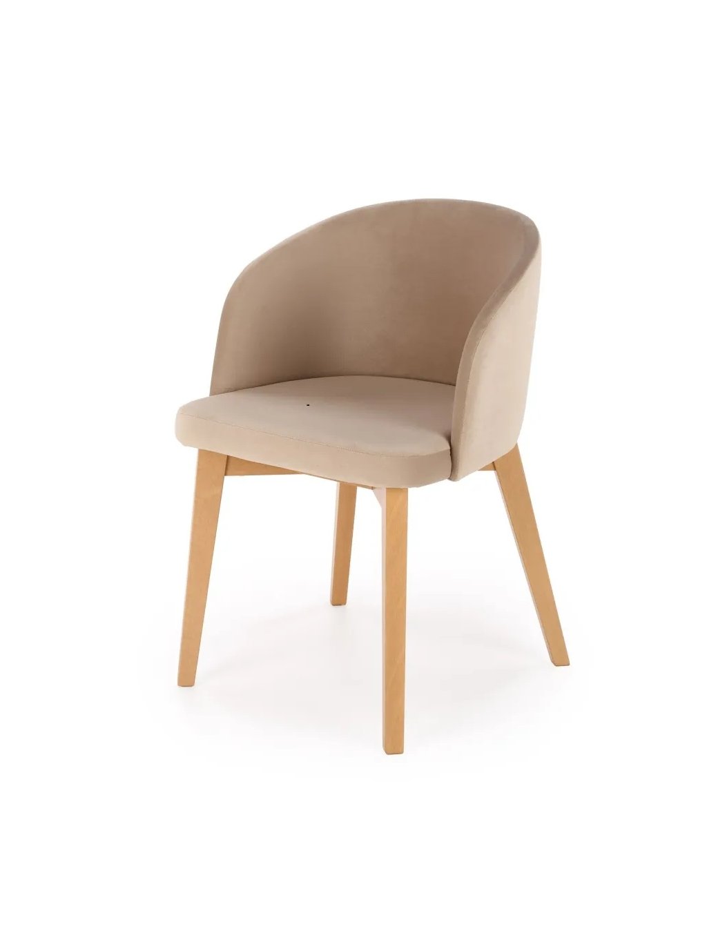 Moderní čalouněná židle s dřevěnou podnoží.